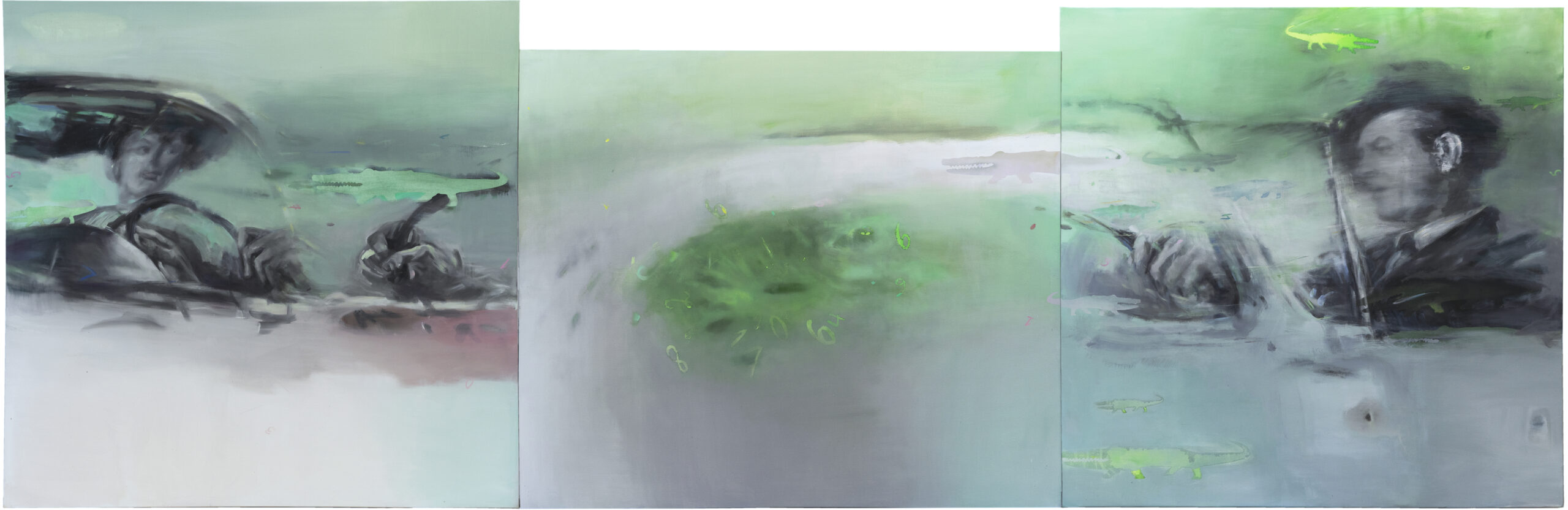 Air, oil and acrylic on canvas, 245cm x 701cm, 96″ x 276″, 2024